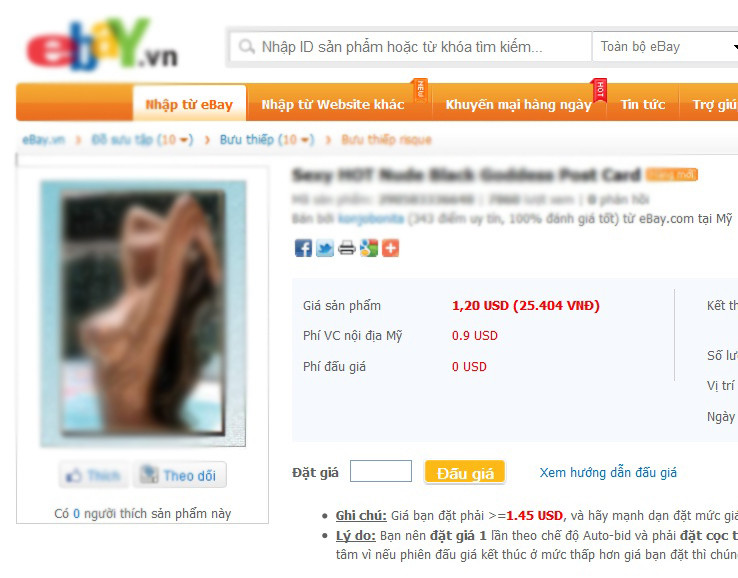 Để kích thích người đọc, eBay.vn cung cấp cả hình ảnh khoả thân khêu gợi