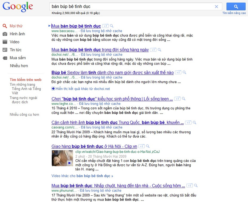 Quả thực với thời đại Internet, các mặt hàng vốn chỉ "truyền tai bí mật" giờ đã công khai, phổ biến. Với các từ khoá “sex toy”, “đồ chơi người lớn”, “búp bê tình dục”… google sẽ chỉ cho bạn rất nhiều website công khai bày bán.