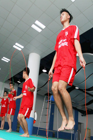 Không chỉ có sân bóng đá có mái che, các cầu thủ Vinshool còn được bơi, tập những bài bổ trợ dưới nước, xem băng hình các trận bóng chuyên nghiệp. Đây hứa hẹn cũng là một ẩn số đầy thú vị của giải năm nay.