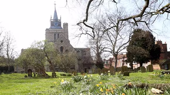 Nhà thờ St Mary the Virgin ở vùng Aylesbury, Buckinghamshire, Anh nơi phát hiện ra một phần thi thể được cho rằng giống như một cái tai người