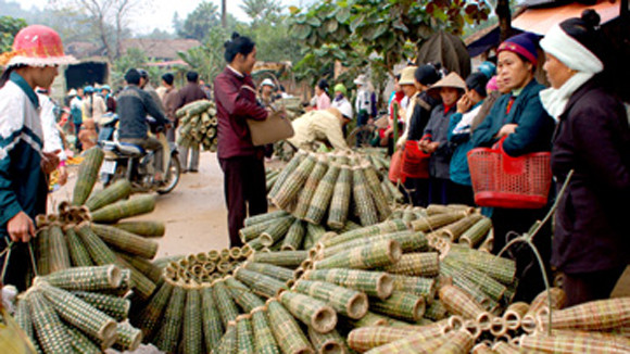 Tôi thích theo bà đi chợ nhất vì bà chọn hàng rất lâu. Không như mẹ tôi, thường qua quýt cho nhanh để còn về đi làm đồng. Chợ phiên mỗi tháng vài lần nên bà ngắm nghía rất kĩ và mặc cả tỉ mỉ lắm. Thời gian đó tôi tha hồ chạy lăng xăng khắp chợ để đùa nghịch. Ngôi chợ đơn sơ như chính cuộc sống bình dị của những người nông dân quê kệch. Tôi chạy một hơi là đã quay lại chỗ cũ. Loanh quanh cũng chỉ mấy hàng cua cá, hàng vàng hương, hàng rau quả, hàng bún bánh, cuốc xẻng… bày ngổn ngang trên những xạp tre, thúng mẹt. Có lẽ đông đúc nhất là mấy sạp quần áo, giày dép đủ màu sắc của các cô, các bà bên thị trấn mang sang. Người lớn trẻ con vây kín, người ngắm ngía, người lựa chọn làm huyên náo cả góc chợ. Tôi biết bà sẽ chẳng bao giờ mua cho tôi những thứ màu mè “xa xỉ” ấy, nên mặc dù thích lắm nhưng tôi chỉ nán lại nhìn một lúc rồi đi ngay, tiếp tục cuộc khám phá đầy thú vị của mình.