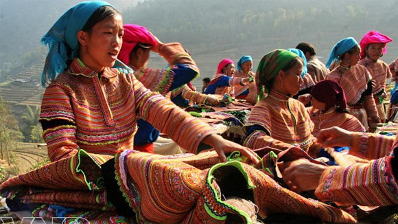Khu chợ dành cho phụ nữ, gọi thế là bởi đàn ông đi chợ chỉ để bán trâu hoặc ăn thắng cố. Bên cạnh những hàng nông sản địa phương thì mặt hàng chính được bày bán ở đây là những bộ áo váy của người Mông, sặc sỡ và đầy cuốn hút. Giá một bộ váy có thể lên tới tiền triệu bởi mỗi năm một người phụ nữ cũng chỉ may được tới hai bộ là nhiều. Ngày nay, có những cánh váy được may bằng vải phin, cũng rực rỡ lắm nhưng dễ may dễ làm nên giá chỉ vài chục nghìn đồng. Có thấy tận mắt mới biết người phụ nữ Mông cũng chăm làm đẹp giống như bao người phụ nữ trên thế gian này bởi ở sạp hàng trang sức với những món đồ bằng bạc như vòng, xuyến, hoa tai được chạm vô cùng tinh tế cũng đang được các chị em xúm lấy, ríu rít trò chuyện.