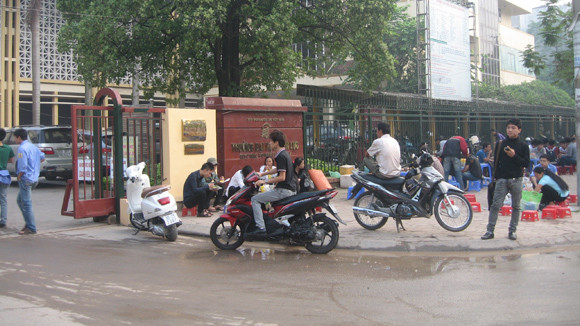 Các hàng xôi, bún chả, bánh cuốn, bánh bao… hoạt động nhộn nhịp phục vụ khách (ảnh chụp sáng 20-10) trông rất nhếch nhác và phản cảm, thậm chí che lấp cả biển hiệu nhà trường, ảnh hưởng đến môi trường sư phạm. Không những thế các hàng ăn này còn xả rác bừa bãi trên vỉa hè gây ô nhiễm môi trường. Đề nghị chính quyền địa phương và lực lượng chức năng dẹp ngay các hàng quán hoạt động trái phép nêu trên tại một tuyến phố trung tâm của quận Cầu Giấy!