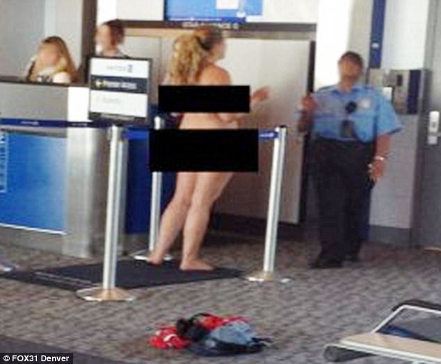 Người phụ nữ đã trút bỏ xiêm y tại trạm kiểm soát an ninh sân bay Denver. Có lẽ cô ấy muốn chứng minh là cô không có gì để che giấu hoặc có thể cô ấy hiểu lầm rằng các nhân viên an ninh đã yêu cầu cô cởi quần áo để kiểm tra?