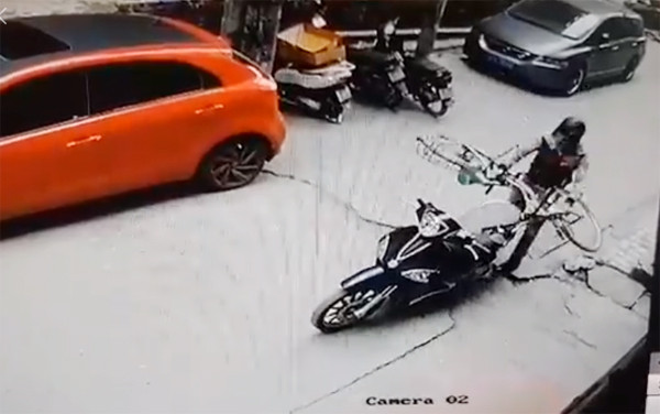 Thời điểm trên, người đàn ông đi xe máy nhãn hiệu Liberty dừng trước cửa nhà và quan sát ít phút, khi thấy vắng người qua lại đã đi sang phía đối diện, lấy chiếc xe đạp đang dựng bên cạnh khá nhiều xe máy khác và để lên yên xe máy của mình phóng đi.