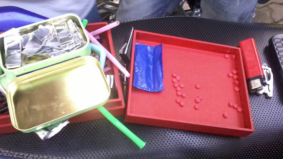 Tại đây, qua kiểm tra một trong 2 chiếc xe, phát hiện số khung đã bị đục xóa, xe còn lại tổ công tác nghi ngờ mang BKS giả. Đáng chú ý, trong cốp xe máy trên có một túi ni lon màu đen, bên trong chứa rất nhiều dụng cụ dùng để “chơi đá”. Lợi dụng khi tổ công tác kiểm tra, một trong số 4 đối tượng nhanh tay liệng nhanh một hộp nhỏ vào ven đường hòng phi tang. Hành vi này đã bị chỉ huy Y15 phát hiện, thu giữ bên trong hộp có 25 viên hồng phiến.