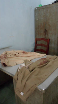 Bộ quần áo dính máu của hung thủ mặc khi đến công an đầu thú