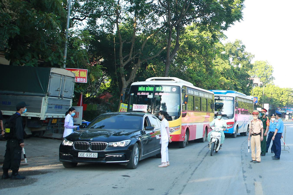 ANTD.VN - Tại các chốt kiểm soát phòng chống dịch Covid-19 ở cửa ngõ Hà Nội, toàn bộ người điều khiển phương tiện phải dừng lại để kiểm tra y tế. Ghi nhận tại điểm chốt số 12 tại Km422+057 đường Hồ Chí Minh và điểm chốt số 13 tại thị trấn Xuân Mai (huyện Chương Mỹ) rất nhiều phương tiện đã được yêu cầu dừng xe kiểm tra, nhiều người và phương tiện đến từ vùng có dịch đã phải quay đầu do thiếu các giấy tờ theo quy định về phòng, chống dịch.