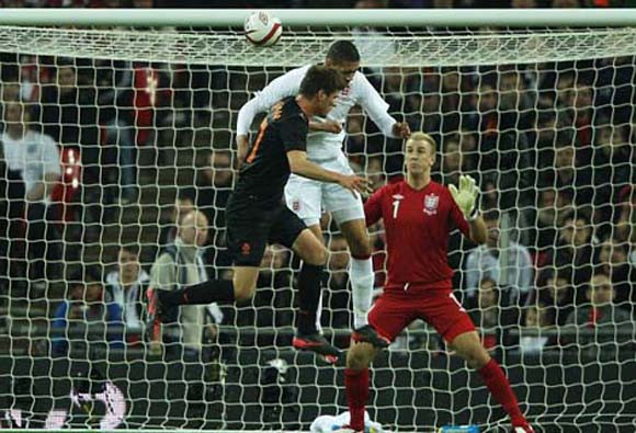 Đó là tình huống dẫn đến bàn thắng thứ 2 của Hà Lan ở phút 59, Huntelaar đã có pha chọn vị trí bật cao đánh đầu rất mạnh làm tung lưới thủ môn Joe Hart. Trong nỗ lực đánh đầu phá bóng, Smalling đã tới chậm một nhịp và thay vì đánh trúng bóng, tiền đạo này đã "phi" thẳng đầu vào đầu của Huntelaar.
