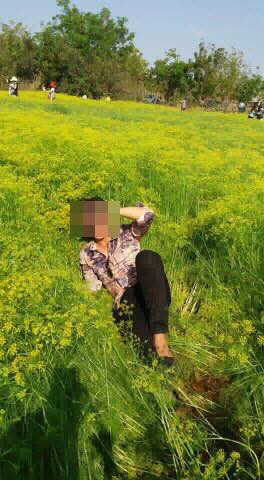 Du khách thiếu ý thức nằm đè lên hoa tạo dáng chụp ảnh (ảnh: Hân Nguyễn)