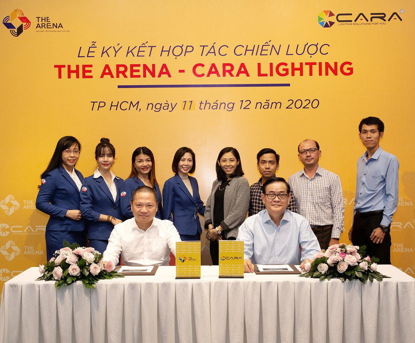 Tham dự buổi lễ ký kết có ông Nguyễn Quốc Thống - Chủ tịch HĐQT Cara Lighting - người được mệnh danh là “phù thủy ánh sáng” trong làng kiến trúc Việt Nam và ông Lê Anh Đức - Chủ tịch HĐQT Công ty Cổ phần Đầu tư Xây dựng Vịnh Nha Trang, chủ đầu tư dự án The Arena cùng các lãnh đạo phòng, ban của hai bên.