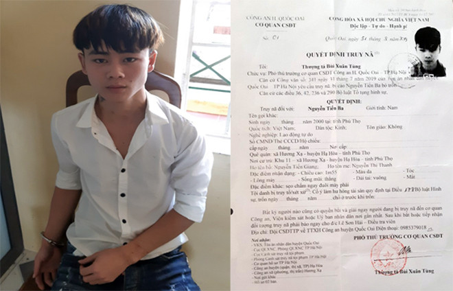 Đối tượng Ba tại cơ quan Công an và Quyết định truy nã của CAH Quốc Oai