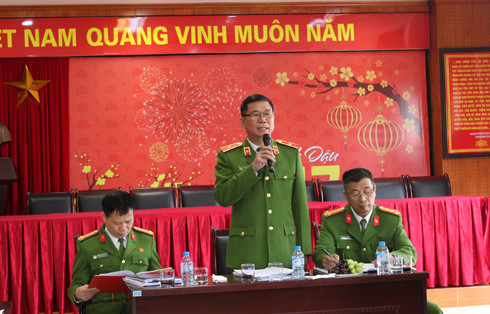 Thiếu tướng Đinh Văn Toản, Phó Giám đốc CATP Hà Nội phát biểu ý kiến chỉ đạo hội nghị