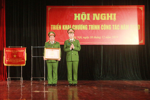 Thứ trưởng Nguyễn Duy Ngọc trao Cờ đơn vị xuất sắc trong phong trào thi đua Vì An ninh Tổ quốc năm 2019 của Bộ Công an cho các đơn vị thuộc Bộ tư lệnh CSCĐ