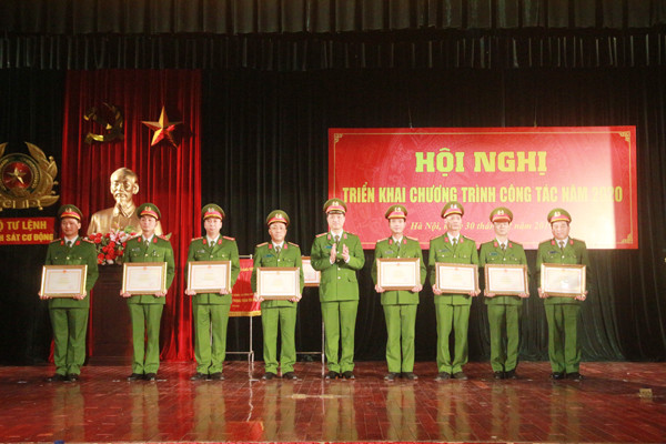 Thiếu tướng Nguyễn Duy Ngọc trao Bằng khen của Bộ trưởng Bộ Công an cho các tập thể và các cá nhân của Bộ tư lệnh CSCĐ có thành tích xuất sắc