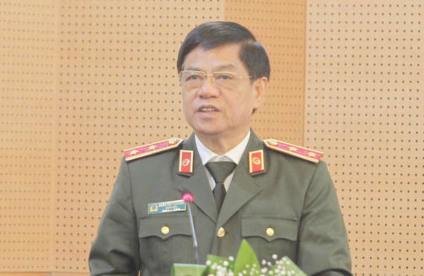Trung tướng Đoàn Duy Khương, Ủy viên Ban Thường vụ Thành ủy, Bí thư Đảng ủy, Giám đốc Công an thành phố Hà Nội báo cáo kết quả nổi bật của lực lượng Công an Thủ đô
