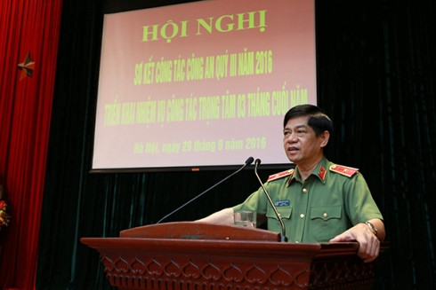 Thiếu tướng Đoàn Duy Khương, Giám đốc CATP Hà Nội phát biểu chỉ đạo hội nghị sơ kết quý III - 2016 của CATP