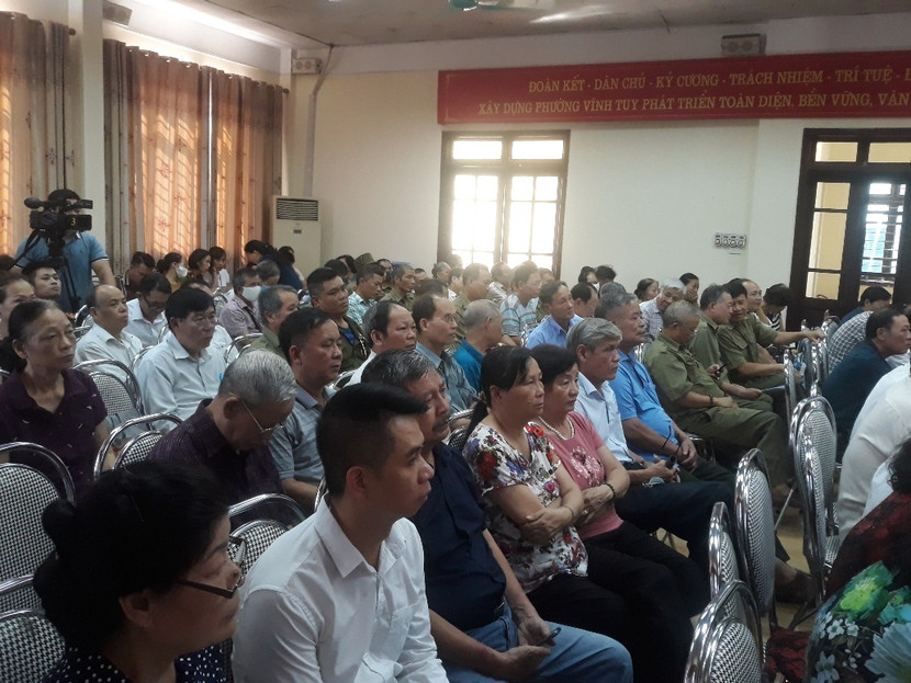 Toàn cảnh hội nghị tại trụ sở UBND phường Vĩnh Tuy, chiều 30-7
