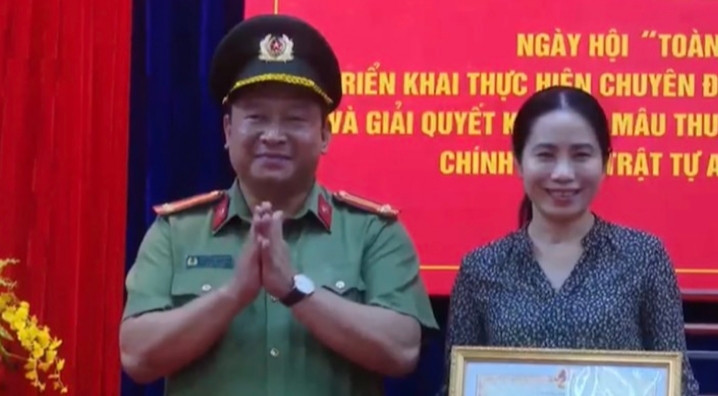 Được sự ủy quyền của lãnh đạo cấp trên, Trung tá Nguyễn Ngọc Huy - Phó Bí thư Đảng ủy, Phó trưởng CAQ, Phó trưởng BCĐ 138 quận Hai Bà Trưng trao Bằng khen của Bộ Công an cho cán bộ, nhân dân phường Vĩnh Tuy trong công tác xây dựng phong trào