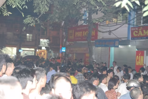 Lực lượng Công an đang làm việc vất vả trước ngôi nhà số 5 Nguyễn Thái Học, Hà Đông