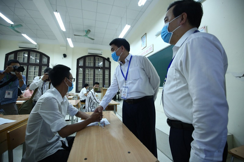 Tại phòng thi, Chủ tịch UBND TP Nguyễn Đức Chung đã thăm hỏi, động viên các thí sinh bình tĩnh, tự tin vượt qua kỳ thi, khắc phục mọi khó khăn khi kỳ thi được tổ chức trong thời điểm dịch COVID-19.
