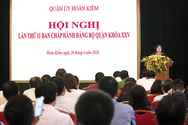Yêu cầu Đảng bộ quận tiếp tục đổi mới công tác lãnh đạo, chỉ đạo của cấp ủy đảng, điều hành sâu sát, có trọng tâm trọng điểm; bám sát các chỉ tiêu, nhiệm vụ Nghị quyết Đại hội đề ra để phấn đấu hoàn thành ở mức cao nhất, Chủ tịch HĐND TP Nguyễn Thị Bích Ngọc lưu ý: “Cần đánh giá, rút kinh nghiệm trong từng lĩnh vực, nhân rộng các điển hình, đặc biệt là trong lĩnh vực văn hóa hiện nay quận đang làm rất tốt, TP đang cần kinh nghiệm hay của Hoàn Kiếm để nhân rộng ra toàn thành phố”.