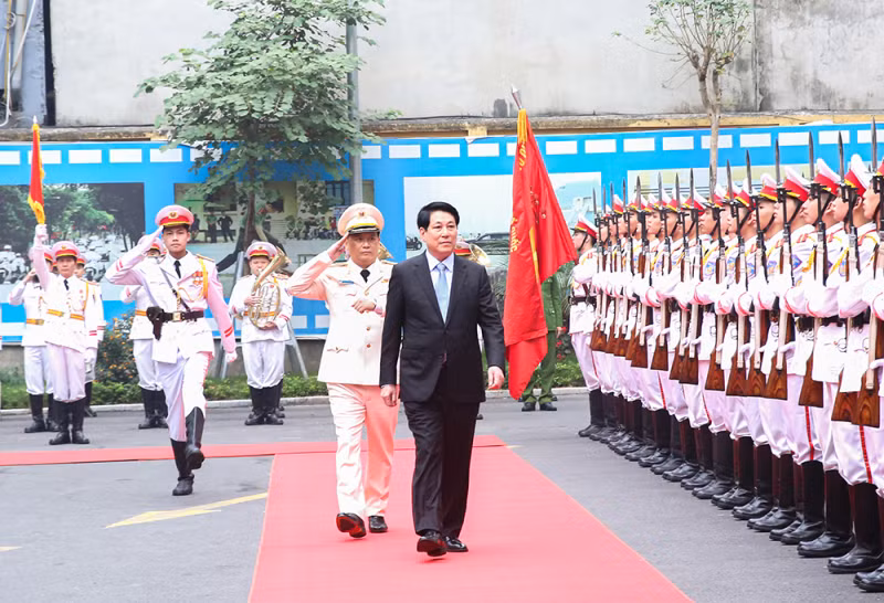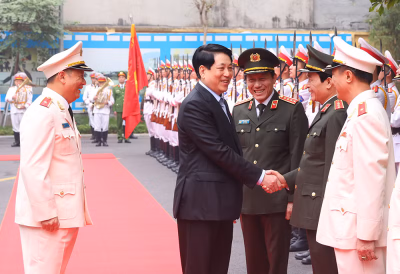 Chủ tịch nước Lương Cường thăm hỏi, chúc Tết các đồng chí lãnh đạo Bộ Công an.