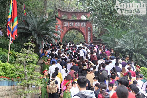 Lực lượng an ninh được tăng cường khắp mọi ngả đường dẫn lên đền Thượng.