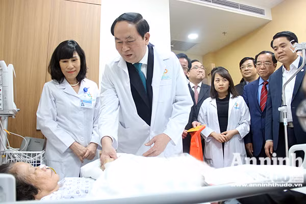 Chủ tịch nước Trần Đại Quang thăm hỏi, tặng quà bệnh nhân đang điều trị tại Trung tâm Kỹ thuật cao và Tiêu hoá, Bênh viện Xanh Pôn