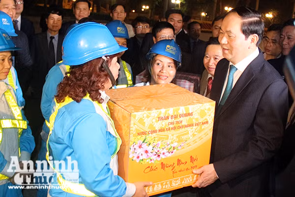 Chủ tịch nước Trần Đại Quang tặng quà công nhân môi trường làm nhiệm vụ đêm Giao thừa