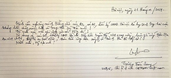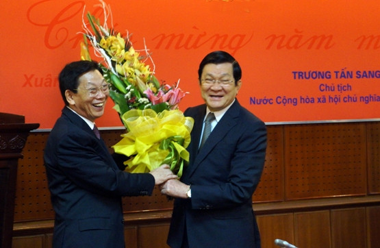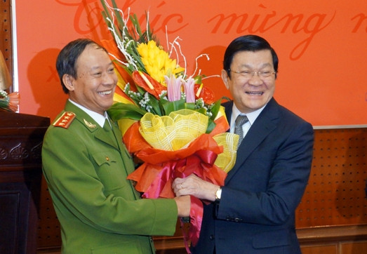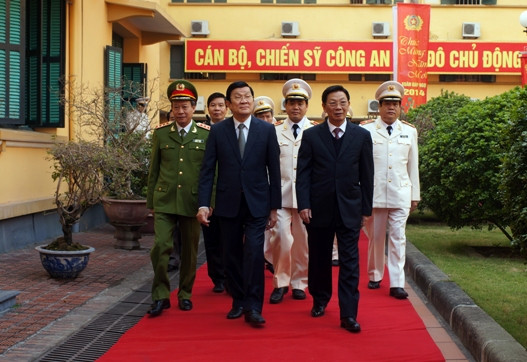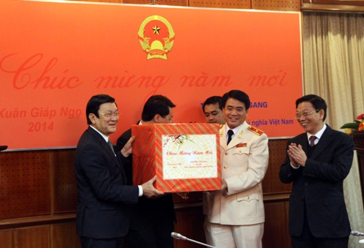 Bày tỏ niềm vui khi đến thăm, chúc Tết CBCS CATP, thay mặt lãnh đạo Đảng, Nhà nước, Chủ tịch nước Trương Tấn Sang thân ái gửi tới CBCS Công an Thủ đô những lời chúc tốt đẹp nhất; bước sang năm mới lập nhiều chiến công mới, hoàn thành xuất sắc nhiệm vụ nặng nề nhưng rất vẻ vang được Đảng, Nhà nước và nhân dân giao phó.