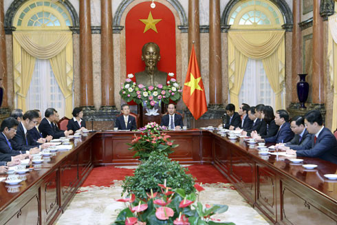 Chủ tịch nước Trần Đại Quang tiếp đoàn đại biểu Liên đoàn Kinh tế vùng Kansai, Nhật Bản