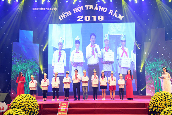 Tại Đêm hội trăng rằm, lãnh đạo TP đã trao 1.000 suất quà Trung thu cho trẻ em tham dự nhằm động viên, khích lệ sự nỗ lực phấn đấu của các em học sinh có hoàn cảnh khó khăn của một số quận, huyện và Trung tâm nuôi dưỡng trẻ em trên địa bàn TP.
