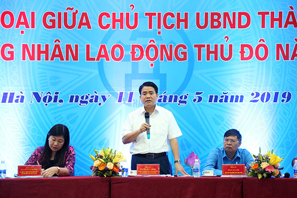 Chủ tịch UBND TP Nguyễn Đức Chung dự buổi đối thoại với công nhân Thủ đô 2019