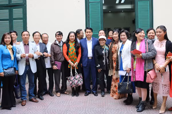 Chủ tịch UBND TP Nguyễn Đức Chung cùng các văn nghệ sỹ, trí thức tiêu biểu của Thủ đô
