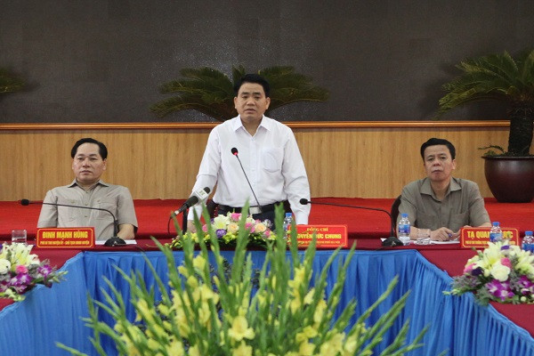 Chủ tịch UBND TP Nguyễn Đức Chung phát biểu tại buổi làm việc với huyện Chương Mỹ