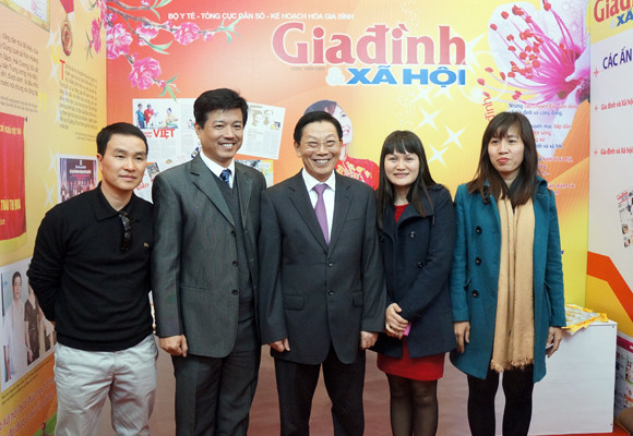 Chủ tịch UBND TP Hà Nội Nguyễn Thế Thảo chụp ảnh lưu niệm cùng lãnh đạo, phóng viên báo Gia đình xã hội.
