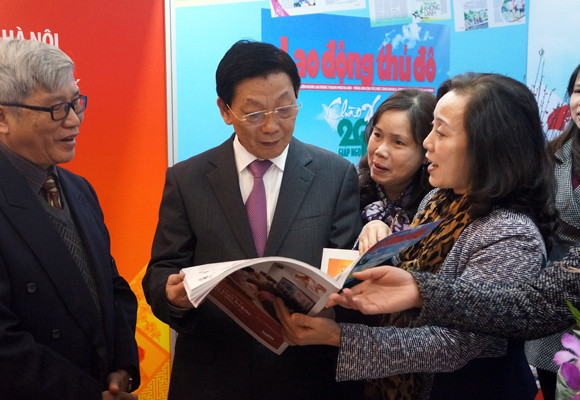 Chủ tịch UBND TP Hà Nội Nguyễn Thế Thảo thăm gian tưng bày báoLao động Thủ đô