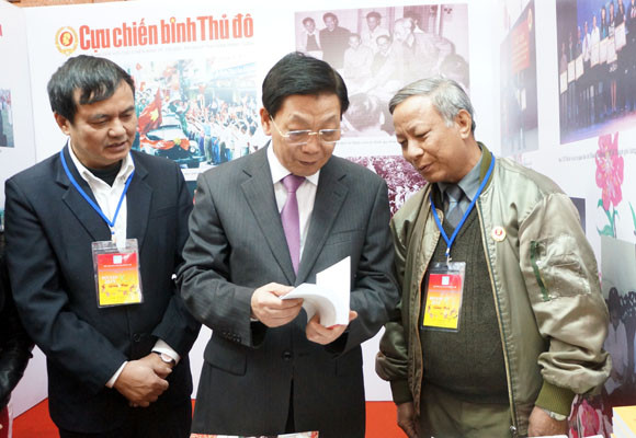 Chủ tịch UBND TP Hà Nội Nguyễn Thế Thảoxem các ấn phẩm của báo Cựu chiến binh Thủ đô