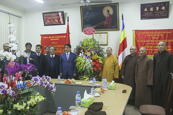 Nhân dịp này, Chủ tịch UBND TP cũng bày tỏ cảm ơn tới Hòa thượng và các chư tôn trong thời gian qua đã tích cực góp phần thúc đẩy an sinh xã hội, cầu phúc an dân đóng góp vào sự nghiệp phát triển của Thủ đô. Chủ tịch UBND TP mong muốn Hòa thượng và các vị chư tôn tiếp tục quan tâm cùng lãnh đạo thành phố xây dựng Thủ đô ngày càng giàu đẹp, văn minh.