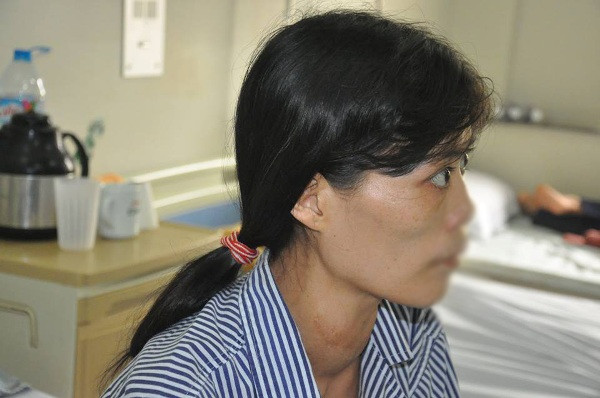 Mới đây, Bệnh viện Nội tiết Trung ương tiếp nhận bệnh nhân Lê Thị Th. ( sinh năm 1985, quê Thanh Hóa) vào cấp cứu trong tình trạng suy kiệt, cổ to, nhiều vết sẹo lớn nhăn nhúm trên cổ, mắt lồi, tay run.