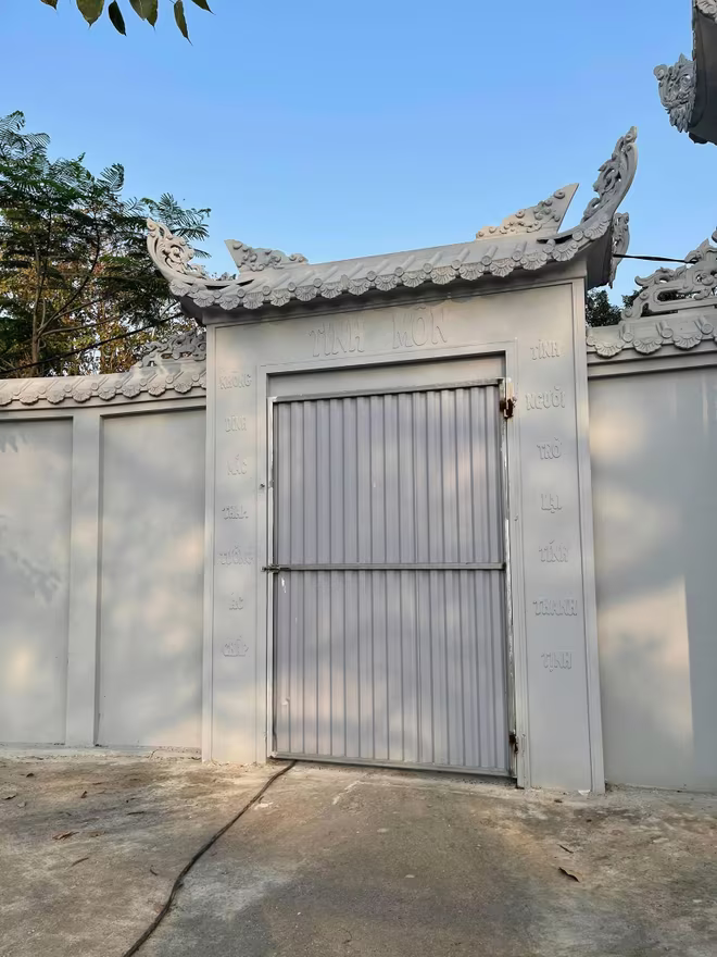 Đặc biệt, vị trí lối đi phía sau bên trái khu vực nhà Tổ có xây dựng thêm một hạng mục cổng quy mô khá lớn. Khu vực phía sau hành lang gần với am thờ bên trái Tam bảo có xây một công trình, kết cấu cột tôn cuốn tròn, vì kèo sắt, mái lợp ngói tây.