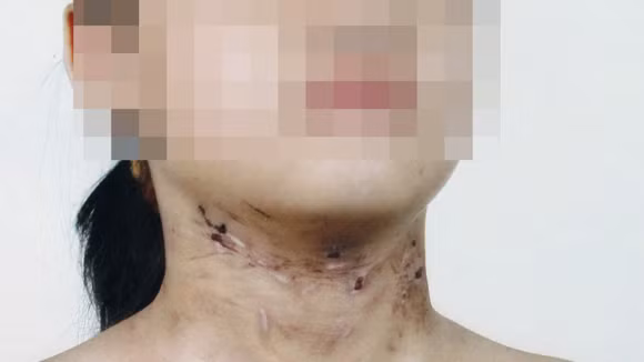 Những vết bầm tím, sẹo chằng chịt trên cổ bé Hà