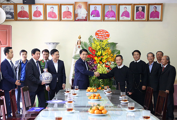Chủ tịch UBND TP Hà Nội Nguyễn Đức Chung chúc mừng các vị linh mục Giáo xứ Thái Hà tại Nhà thờ Thái Hà - Tu viện Dòng Chúa Cứu thế Hà Nội