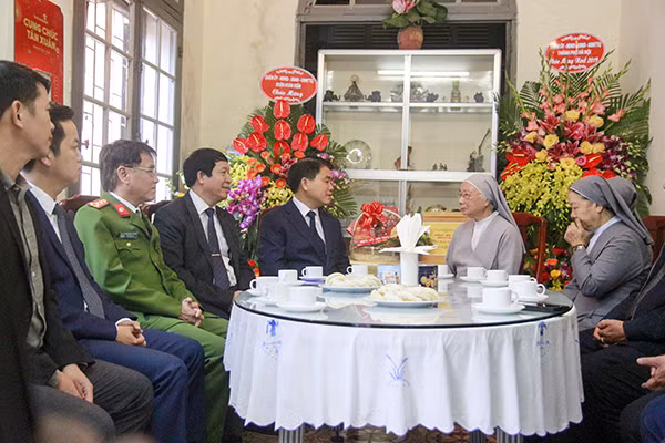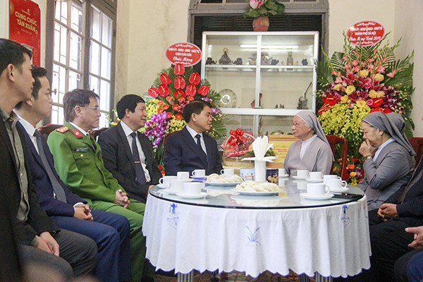 Chủ tịch UBND TP Nguyễn Đức Chung chúc mừng giáng sinh nữ tu Saint-Jean Trần Thị Anh, Bề trên Giám tỉnh và các nữ tu Dòng Thánh Phaolô thành Chartres