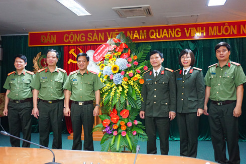 Thiếu tướng Đoàn Duy Khương tặng hoa chúc mừng đại diện lãnh đạo Cục Đào tạo, Bộ Công an