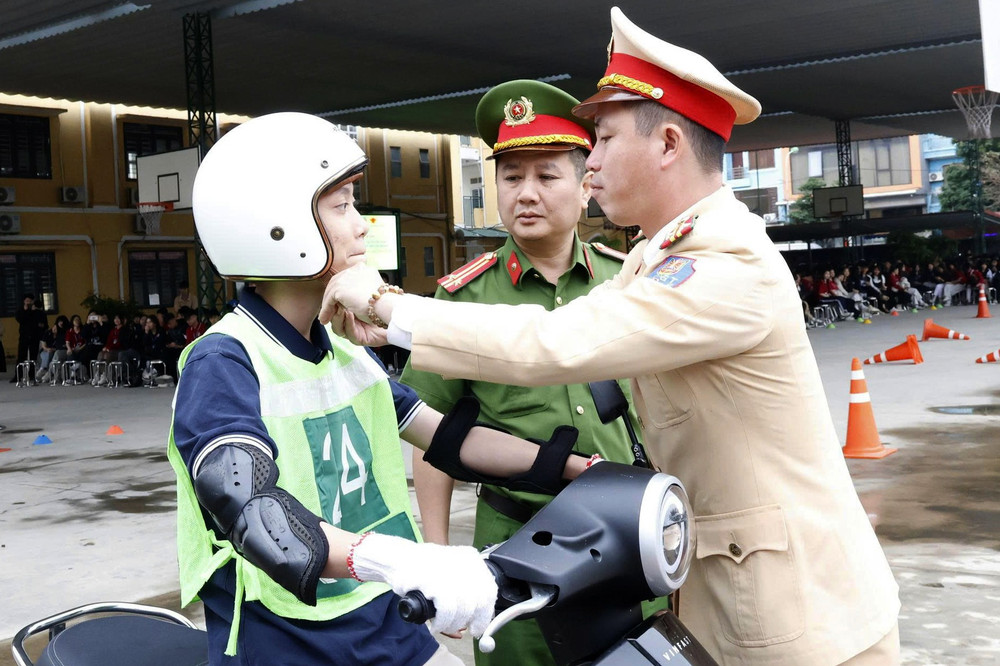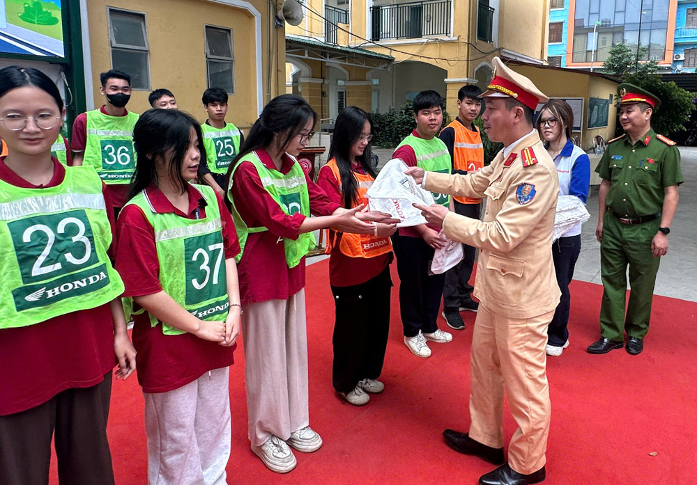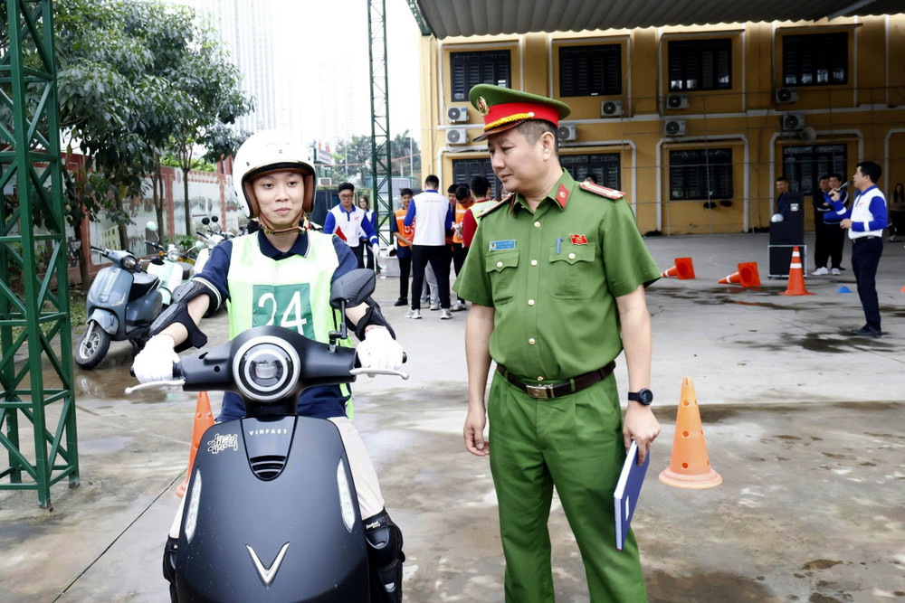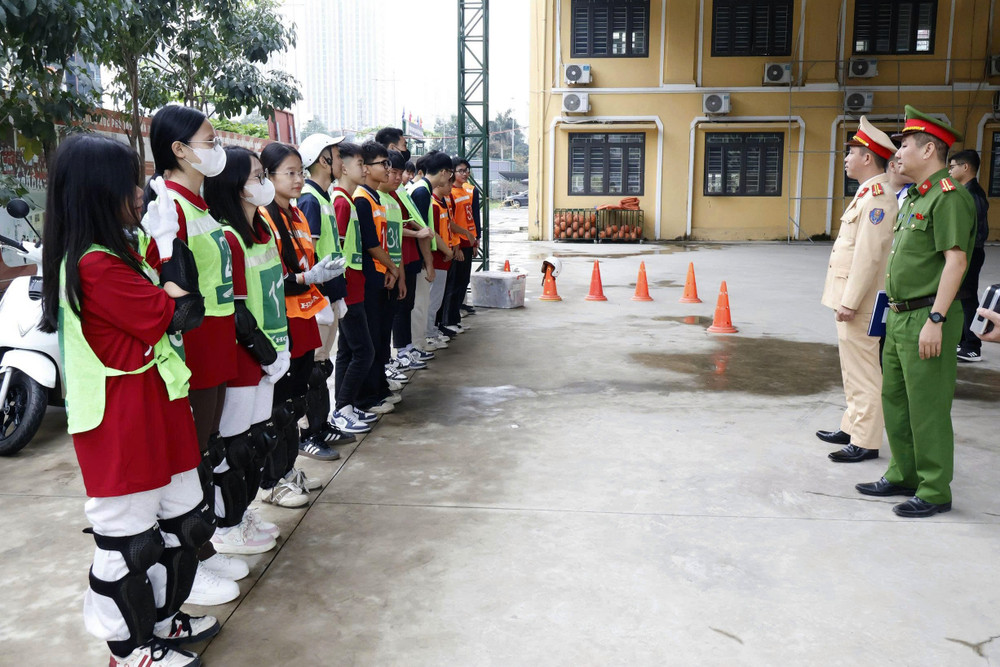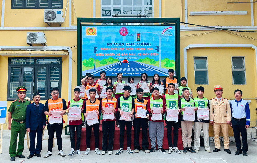 ANTD.VN -Thực hiện kế hoạch tuyên truyền, hướng dẫn kỹ năng lái xe an toàn cho học sinh trung học phổ thông và các cơ sở giáo dục nghề nghiệp trên địa bàn thành phố, Đội Cảnh sát giao thông số 7 (Phòng CSGT - CATP Hà Nội) phối hợp với Công an phường Hà Đông tổ chức chương trình tuyên truyền, hướng dẫn kỹ năng lái xe trực tiếp trên sa hình cho gần 500 học sinh Trường THPT Hà Đông.