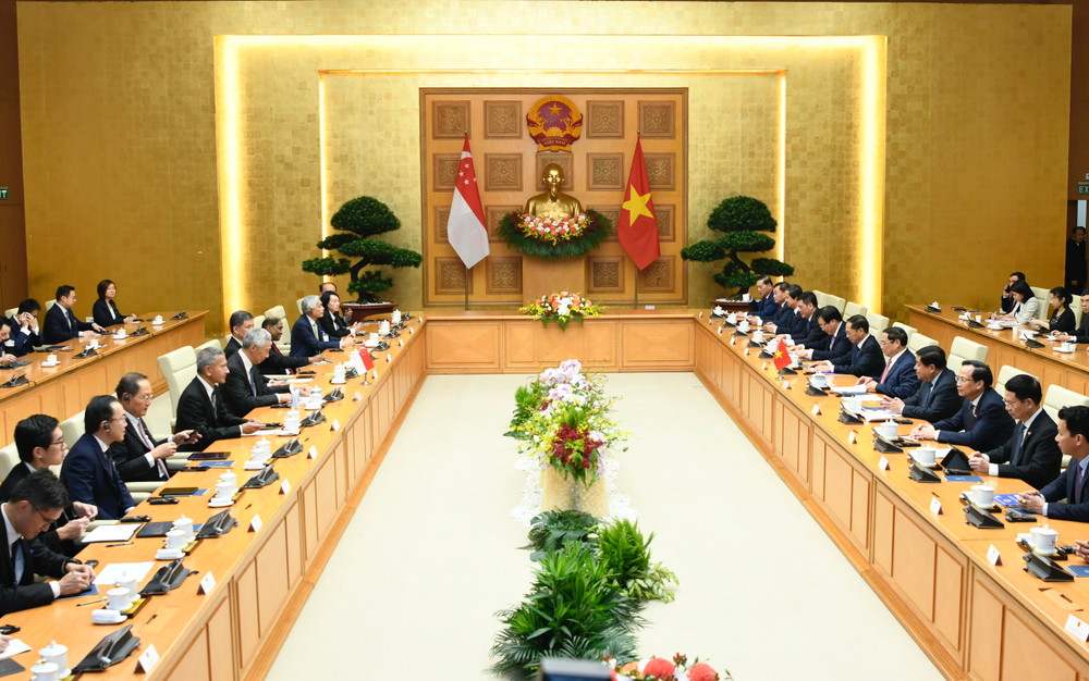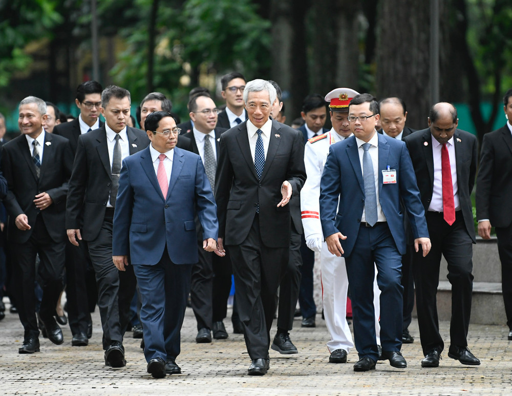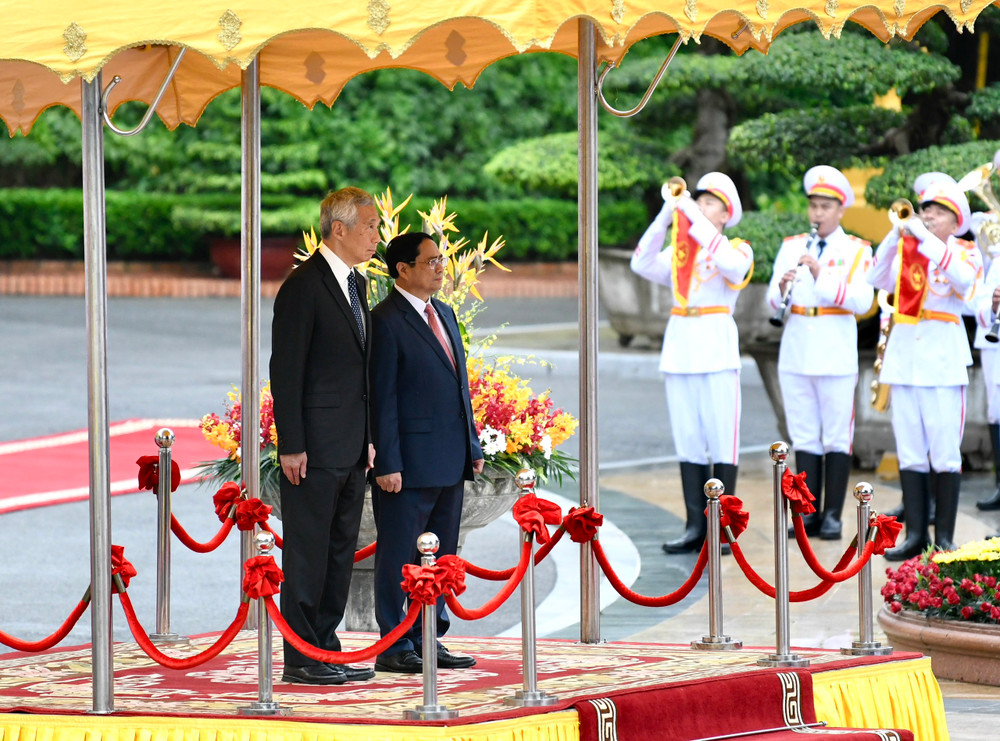 ANTD.VN - Ngày 28-8, Thủ tướng Phạm Minh Chính chủ trì lễ đón Thủ tướng Singapore Lý Hiển Long, trước khi hai nhà lãnh đạo có cuộc hội đàm để bàn các biện pháp thúc đẩy hơn nữa quan hệ giữa hai nước.