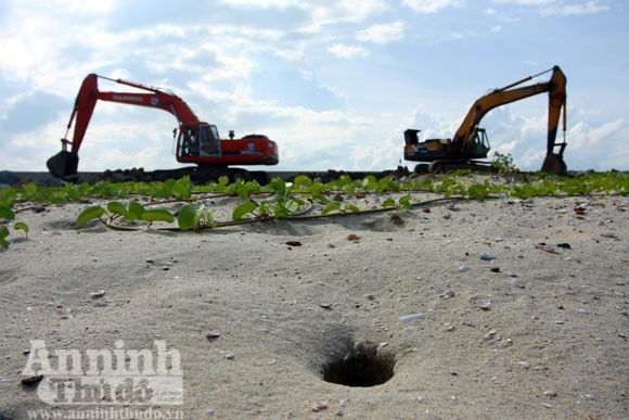 Những cỗ máy đang "xe cát" lấp biển