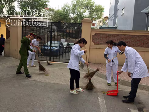 Phong trào dọn dẹp vệ sinh môi trường tại khuôn viên Viện Huyết học-Truyền máu Trung ương diễn ra sôi nổi.